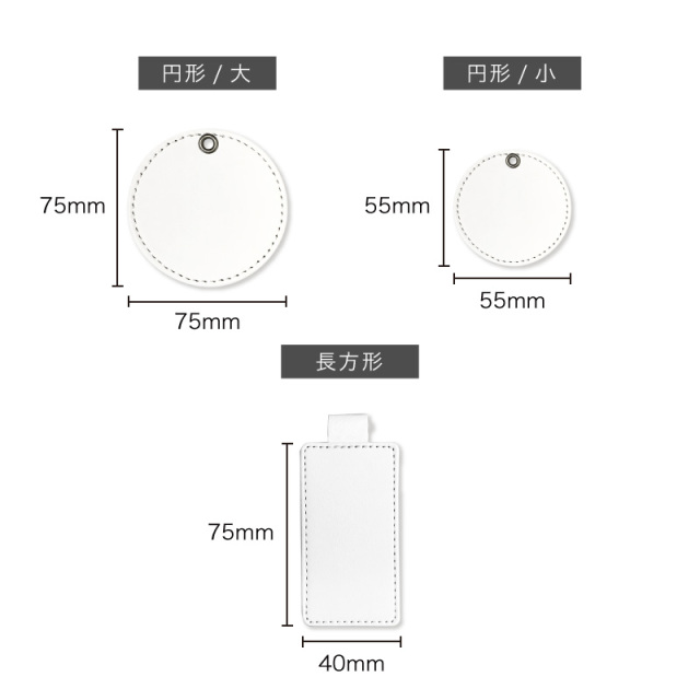 | サイズ | 円形/大:75×75mm 円形/小:55×55mm 長方形:75×40mm |