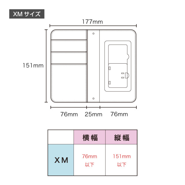 | サイズ | iPhoneX iPhone Xs iPhone 11 Pro iPhone 12 iPhone 12 Pro Google Pixel4 Android One X3 Galaxy S6 edge SCV31など ※縦151mm×横76mm×厚み10mm以下のスマートフォン |