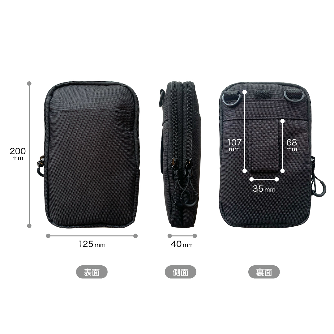 ショルダーバッグとしてだけでなく、カラビナで吊るしてポーチとしても、ベルトを通してウエストバッグとしても使える3WAY仕様。シーンに合わせたご利用方法が選べます。※カラビナはオプションとなります。